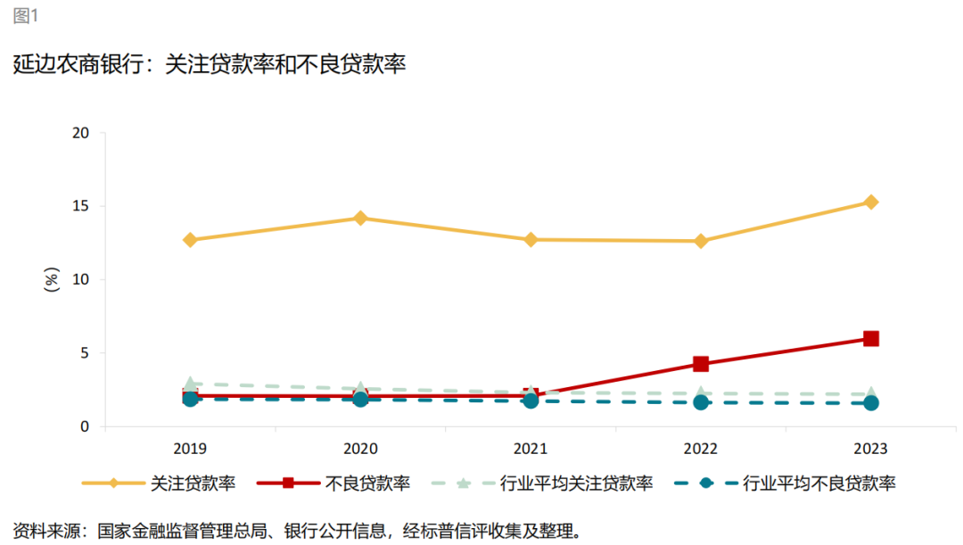 延边农商银行资产质量差,拨备计提不充分,客户集中度高,加之有很高比例的关联方贷款,公司治理和风控机制存在较大缺陷。该行近年来关注类贷款占比和不良贷款率居高不下。截至2023年末,该行不良和关注类贷款占比分别为5.98%和15.27%,分别较年初上升1.72%和2.65%个百分点。该行拨备计提严重不足,截至2023年末,该行拨备覆盖率64%,大幅低于监管最低要求。该行单体层面客户集中度很高,资产质量易受个别客户信用质量的影响。截至2023年末,该行最大单一集团客户贷款和合并口径最大单一集团客户贷款占资本净额的比例分别为72.53%和44.13%。