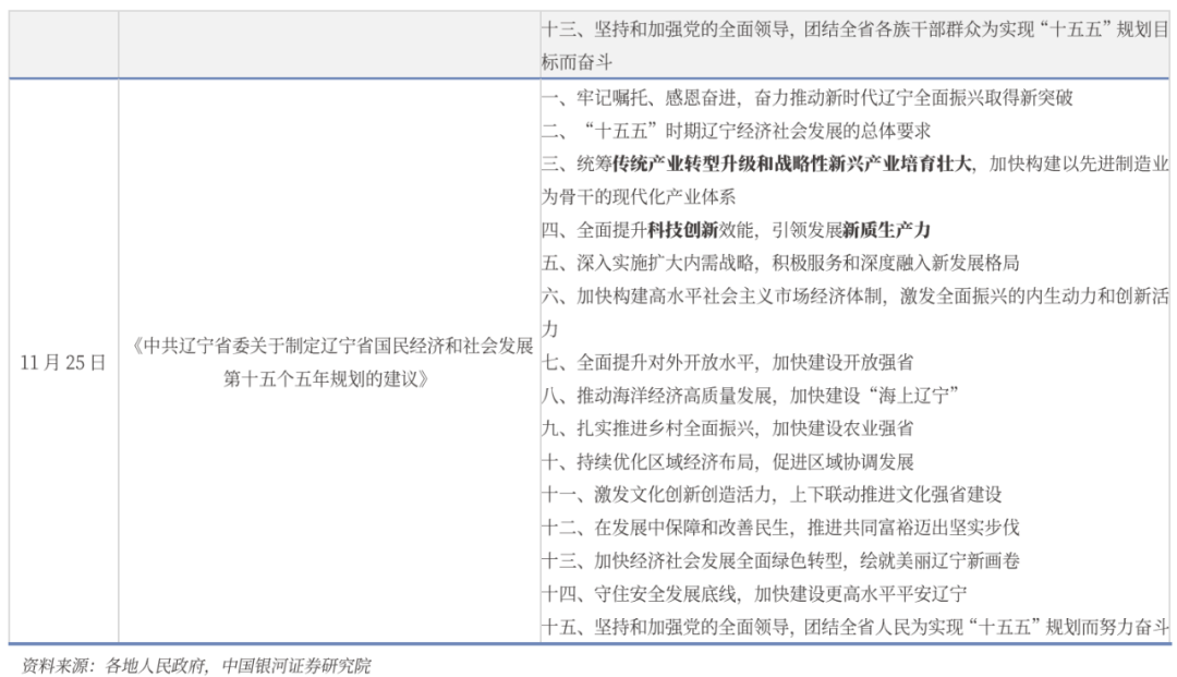 10月23日,中共中央关于制定国民经济和社会发展第十五个五年规划的建议(即“十五五”规划)正式公布。此后,地方政府相继出台本地的“十五五”规划。11月下半月,北京、河北、贵州与辽宁四地先后公布“十五五”规划,标志着地方层面新一轮五年规划的制定逐渐向大众两项,这是指导各地未来五年经济社会发展的重要纲领。