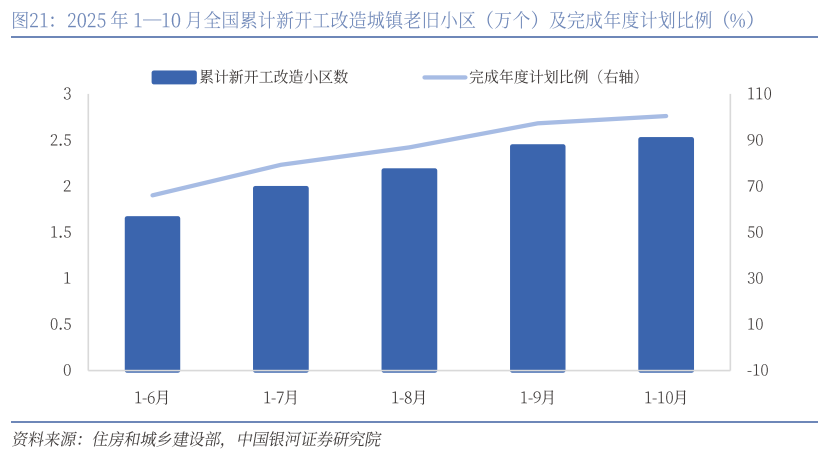 从2020年实施城市更新行动首次写入五年发展规划,到“十五五”规划建议的“大力实施”,我国的城市更新也进入新的阶段,未来将会被摆在更加突出的位置,系统推进好房子、好小区、好社区、好城区“四好”建设。本次推进会中再次强调做好专项规划、建立可持续的投融资体系等,预计城市更新各项新机制将进一步加快建立,配套的金融、财税、土地等支持政策也有望加速落位。据住建部统计,目前全国297个地级及以上城市和152个县级市已经全面开展城市体检,今年共体检了300多万栋住宅,约18万个小区、3万多个社区、3800多个街区,形成了问题清单和整治建议清单,夯实了工作基础。